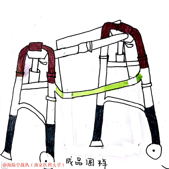作品介绍:将传统助行器与液压杆巧妙结合,达到手部智能调节助行器扶手高度,能够有效、方便的给予使用者舒适的调节方式。此原理在其他辅助器上的运用可以帮助患者更好地健康生活、回归社会。