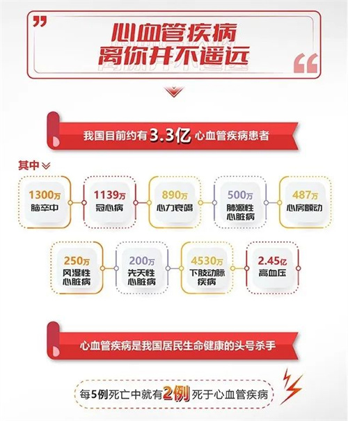 据《中国心血管健康与疾病报告2021》推算,我国心血管病现患人数高达3.3亿,其中脑卒中1300万,冠心病1,139万,高血压2.45亿。心脑血管疾病已成为我国居民第一位死亡原因,具有高患病率、高致残率、高复发率和高死亡率等特点,已成为重要的公共卫生问题。