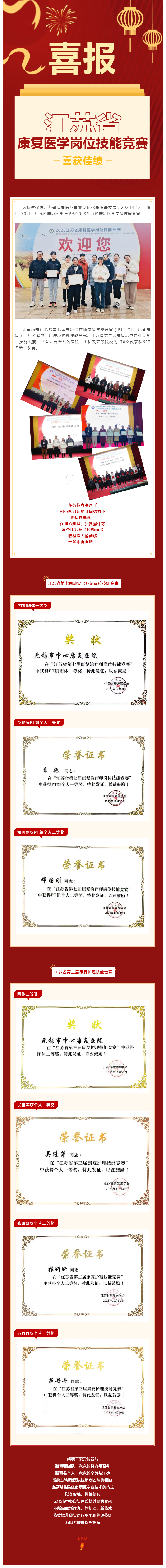 菠菜网 在2023江苏省康复医学岗位技能竞赛中喜获佳绩!