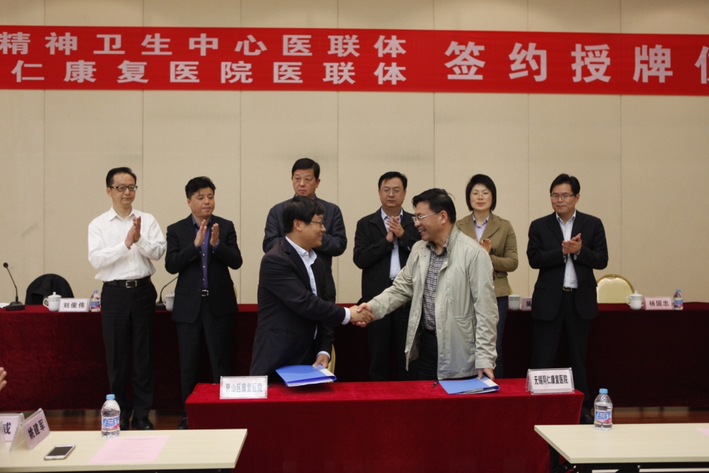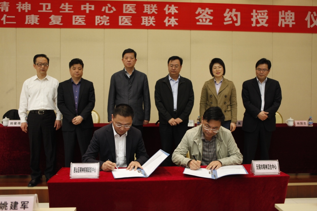 4月25日下午,无锡市精神卫生中心医联体、无锡同仁菠菜网 医联体签约授牌仪式在无锡(藕塘)职教园举行,成立由无锡市精神卫生中心为核心单位,惠山区精神疾病康复中心为成员单位的“无锡市精神卫生中心医联体”,以及由无锡同仁菠菜网 为核心单位,惠山区菠菜网 为成员单位的“无锡同仁菠菜网 医联体”。