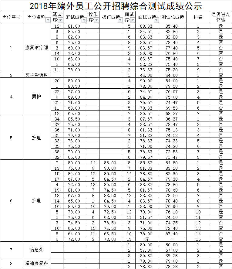 2018年编外员工公开招聘综合测试成绩公示