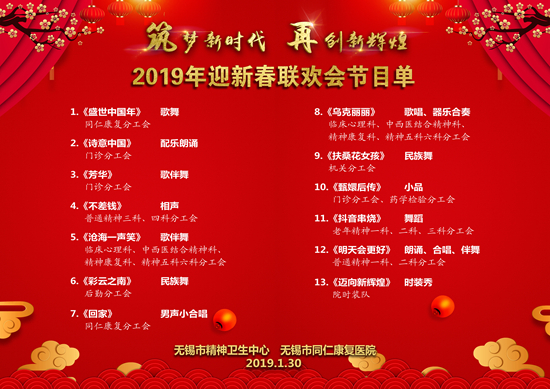 “筑梦新时代 再创新辉煌”2019年迎新春联欢会在一片欢声笑语中拉开帷幕,现场流光溢彩、鼓乐欢腾,乐舞连连,热闹非凡。本次新春联欢会节目均由9个分工会的医务人员自编自演,共庆医院建设成果、喜迎猪年新春佳节。歌舞、朗诵、小品、相声、器乐、时装秀……展现出职工积极向上的精神风貌,看到身边熟悉的同事上台献艺,大家掌声一浪高过一浪,笑声、欢呼声此起彼伏,演员们美妙的舞姿、灿烂的笑容表达出对新的一年最真诚的祝福。整台联欢会内容丰富、形式新颖、激情澎湃,喜庆祥和,集中展示了我院党员干部职工团结务实、积极进取、勇于创新、奋发有为的精神风貌。2019年,我们将筑梦新时代、再创新辉煌!