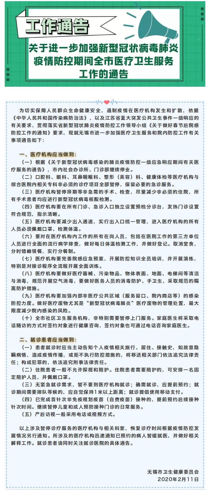 关于进一步加强新型冠状病毒肺炎疫情防控期间全市医疗卫生服务工作的通告