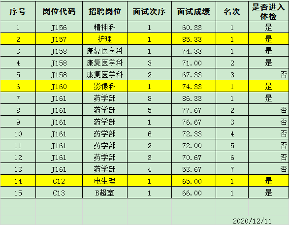 2020年下半年公开招聘面试成绩公示